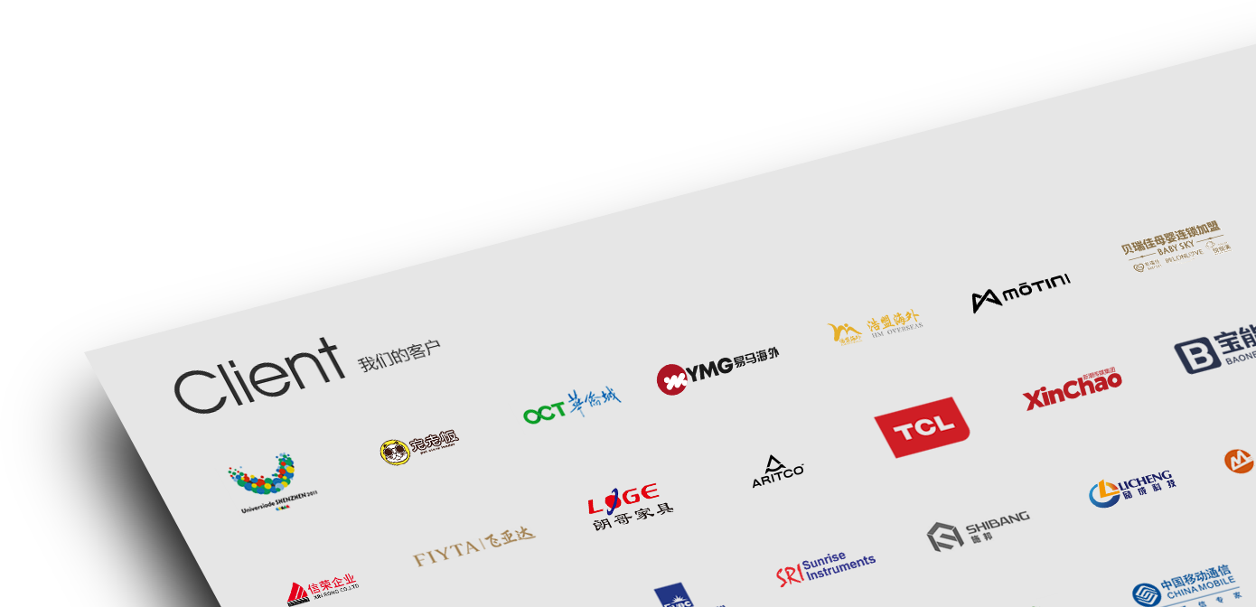 我們的客戶來自各行各業(yè),為了共同目標(biāo),我們在工作上密切配合,從創(chuàng)業(yè)型小企業(yè)到知名品牌,感謝他們對我們的高要求,感謝他們從不同領(lǐng)域給我們帶來的挑戰(zhàn),讓我們激情的團隊有機會用頭腦與智慧不斷的給客戶帶來驚喜。